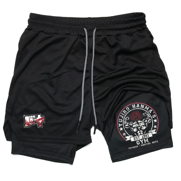 Anime Baki 2-in-1 Gym Performance Short Mens Athletic Compression Shorts Quick Dry Stretch Workout Fitness Running Sportwear