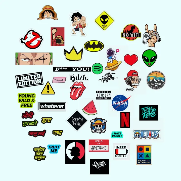 Anime Stickers Pack for Bike, Car, Laptop, Cycle, Helmet, Wallet, Freeze water proof 44 pcs