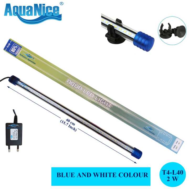 AquaNice T40 Aquarium Fish Tank LED Light Blue White Color Submersible Waterproof Clip Lamp 40 CM Long