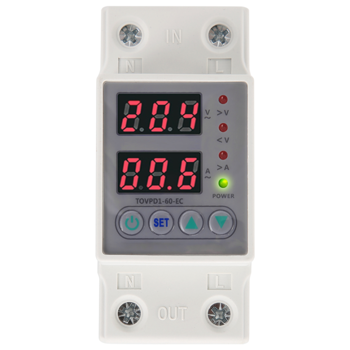 ARELENE%20Din%20Rail%20Dual%20Display%20Adjustable%20over%20Voltage%20Current%20and%20Under%20Voltage%20Protective%20Device%20Protector%20Relay%2060A%20220V%20230V%20-%20Image%201