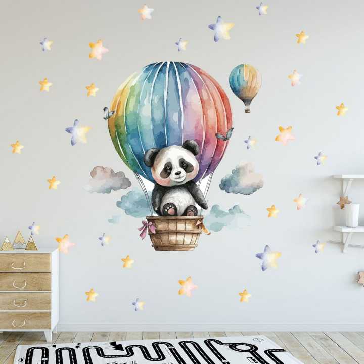 Artsy Home Wall Decal Watercolor Hot Air Balloon Panda Wall Stickers