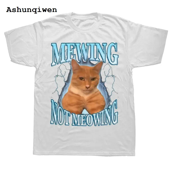 Ashunqiwen Affordable Mewing Not Meowing T Shirt Cute Cats Funny Graphic T-shirts Soft Unisex O-neck Tee Tops EU Size Women Men Clothes