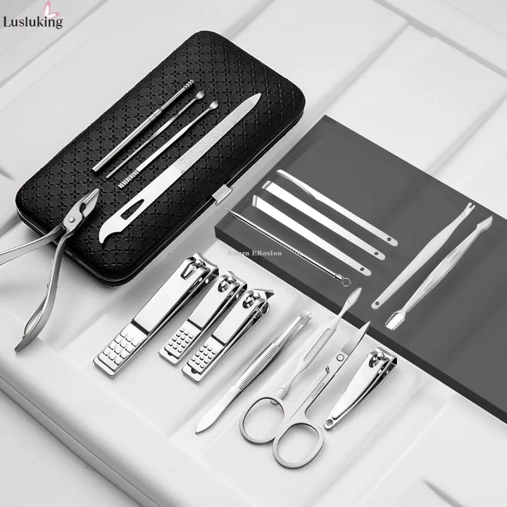 Asinrn%20ERosIon%209/16/19Pcs%20Manicure%20Set%20Black%20Stainless%20Steel%20Nail%20Clippers%20Cuticle%20Nipper%20Pedicure%20Professional%20Care%20Tool%20Cleaning%20Grooming%20Kit%20-%20Image%201