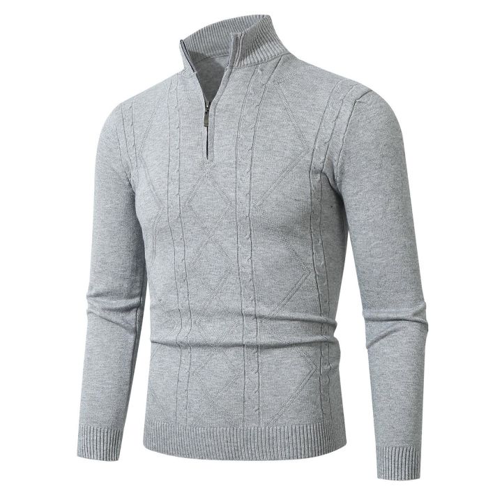 Autum%20Sweatwear%20Men's%20Warm%20Pullover%20Sweaters%20Solid%20Color%20Half%20Zipper%20Coats%20V-neck%20Long%20Sleeve%20Knitted%20Sweatshirts%20Winter%20Top%20-%20Image%201