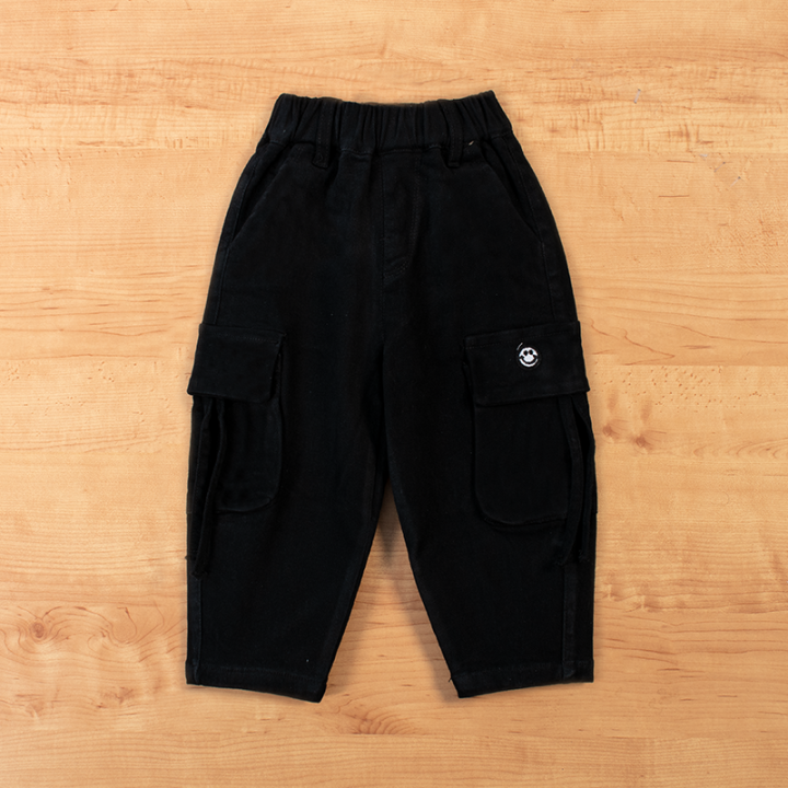 Baby%20Boy%20Pocket%20Design%20Cotton%20Black%20Cargo%20Pants%20-%20Image%201