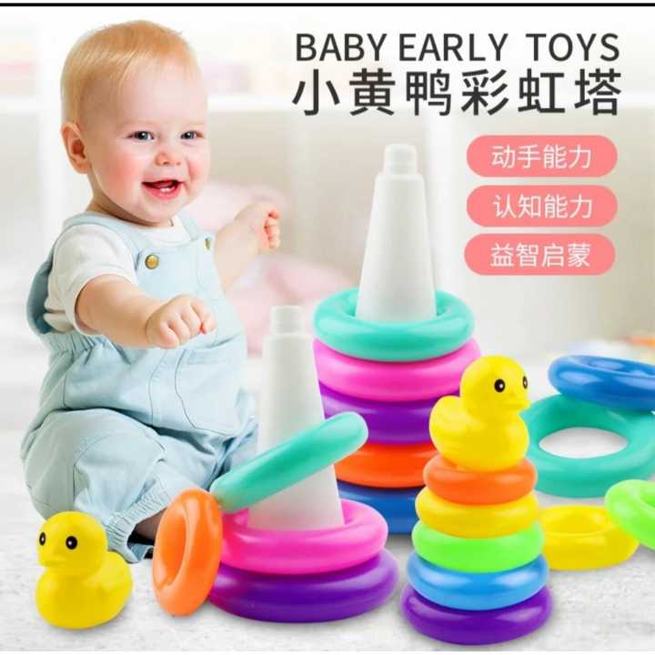 Baby Early Childhood Education Puzzle Ring Toy Kids Toys Children'S Little Yellow Duck Jenga Rainbow Tower Stacking Circle