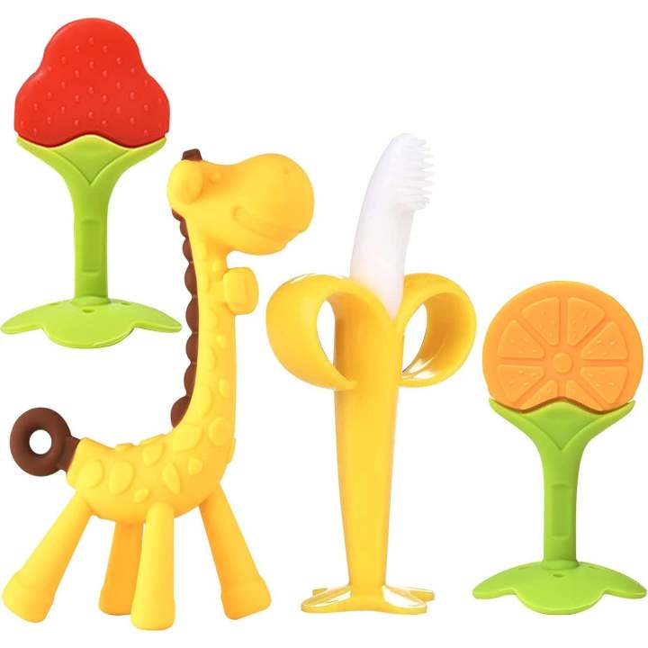Baby%20Teething%20Toys%20(4%20Pack)%20-%20Silicone%20Teethers%20Soothe%20Gums,%20Banana%20Toothbrushes,%20Fruit%20Giraffe%20Shapes%20with%20Storage%20Case%20%7C%20BPA-Free%20Teether%20Set%20for%20Toddlers%20-%20Image%201