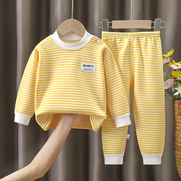 Baby Warm Clothing Set Fleece Lined Children Boys Girls Striped Underwear Sleepwear Set Ideal for Home Pajamas Autumn Winter