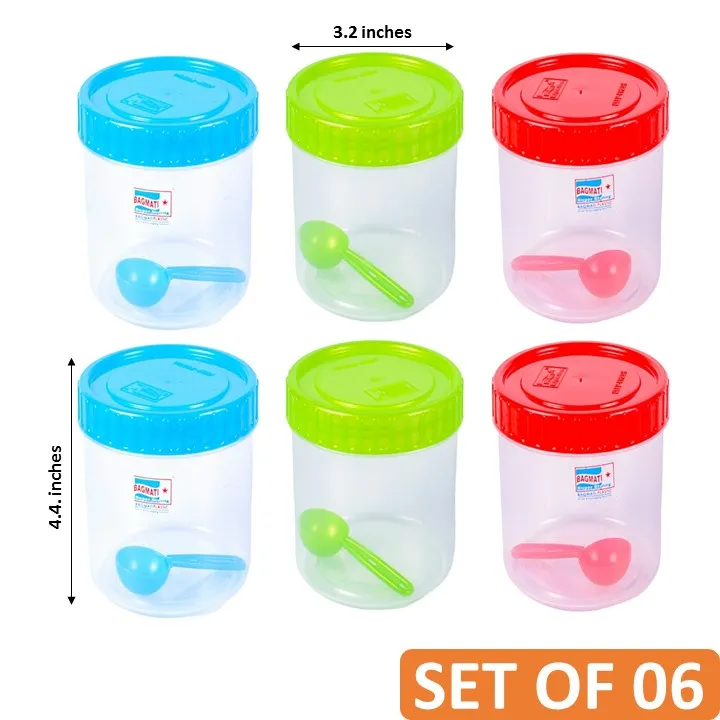 Bagmati Set Of 06 Plain Large Plastic Utility Containers With Spoon