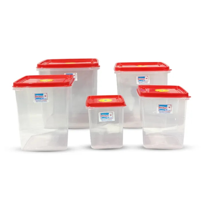 Bagmati Set Of 5 Big Sized Rectangular Plastic Container | Multipurpose Transparent Plastic Container With Air Tight Lid - 5 Pcs