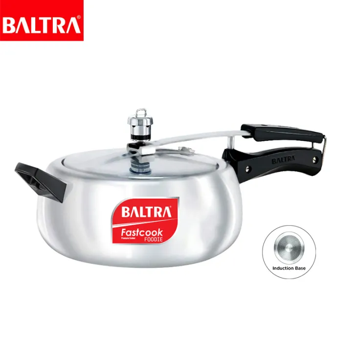 BALTRA Pressure Cooker | Foodie Regular Pressure Cooker |5L | Induction based | Automatic safety valve | Better pressure regulation | Rust proof components, stay cool handles |New improved vent weight | 7 years warranty