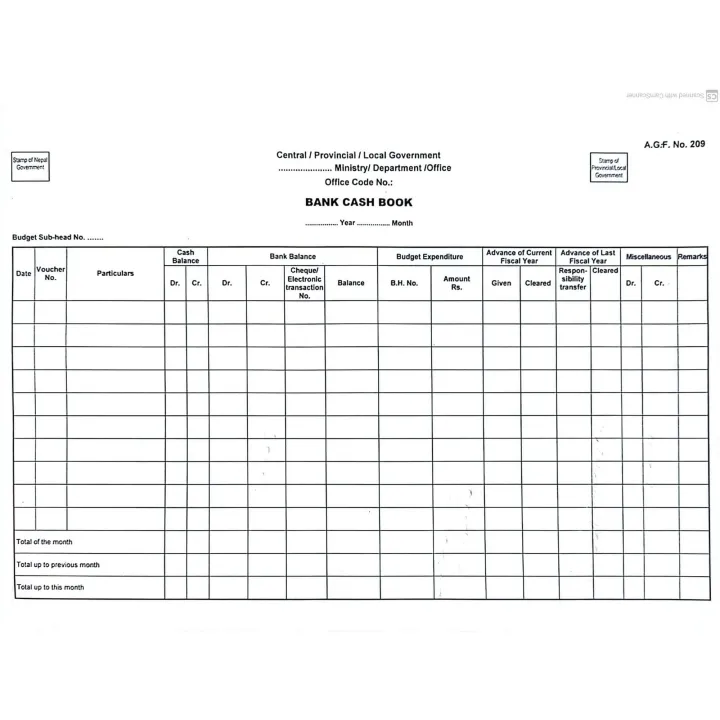 Bank Cash Book (AGF No 209) - New Form For Commerce Students