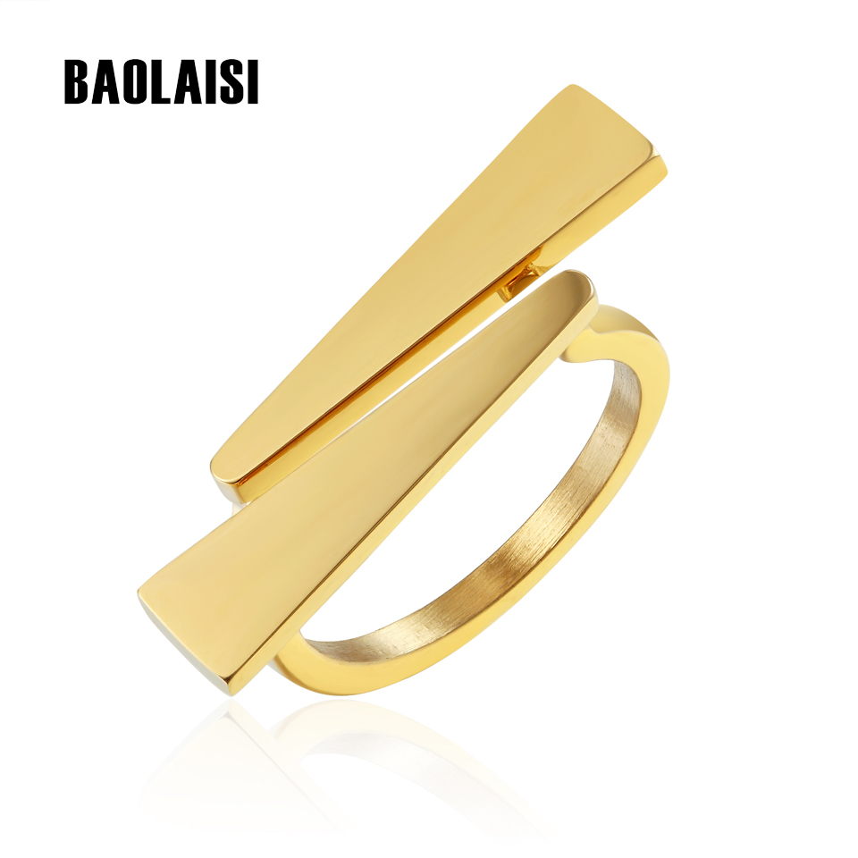 BAOLAISI V Shape Ring Gold-Color For Wo Girl Wedding Bands Jewelry Birthday Party Gifts