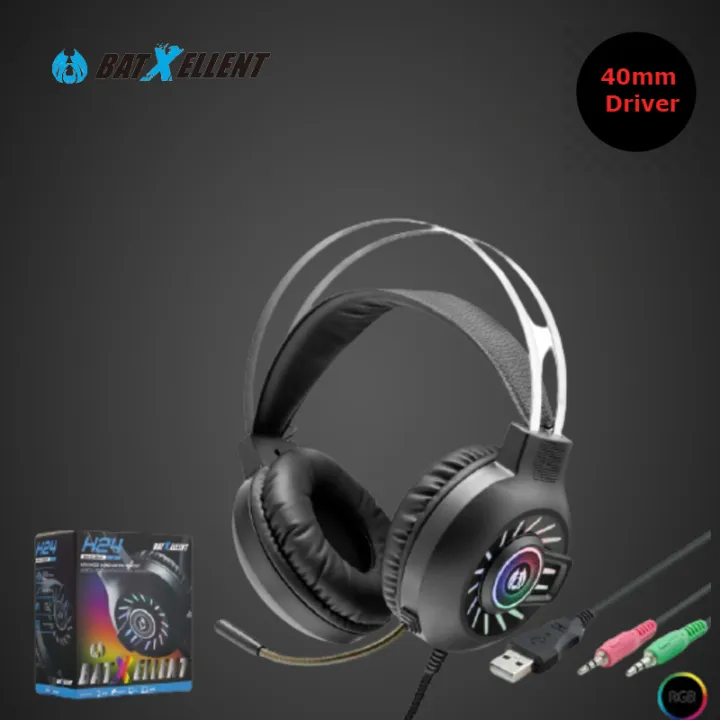 BATXELLENT H24 Gaming Headset True 7.1 Surround Sound Gaming Headphones 50mm Driver, Stereo Over Ear USB Computer Headset with Noise Cancelling Mic, Volume Mic Control LED for PC, Mobile & PS4
