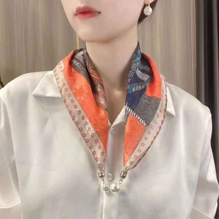 Beautiful Magnetic Buckle Scarves Satin Surface Girls Small Scarf Thin Silk Scarf Woman