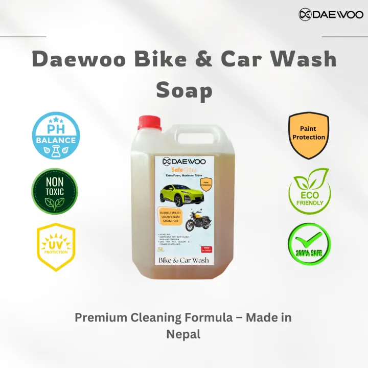 Bike and Car Wash Liquid Shampoo 5Ltr | Daewoo Safe Shine | Bike Shampoo | Car Shampoo | Bike and Car Shampoo | Bike Cleaner | Car Cleaner | Motorcycle Shampoo | Auto Wash Soap | Vehicle Wash | Detailing Shampoo | Super Foamy | pH Neutral | Non-Corrosive