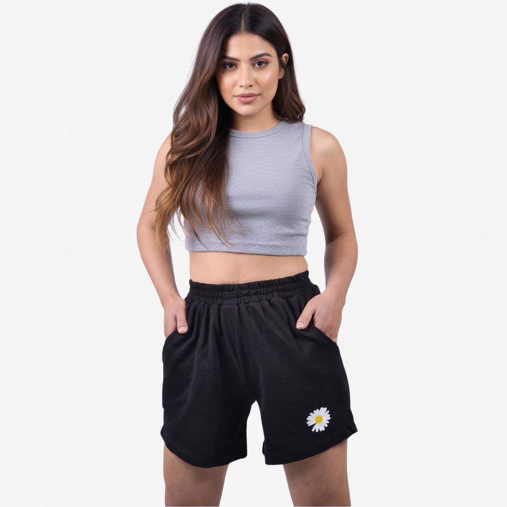 Binay Embroidery Casual Women'S Summer Free Size Shorts With Print - Black | Fashion Casual Shorts For Women