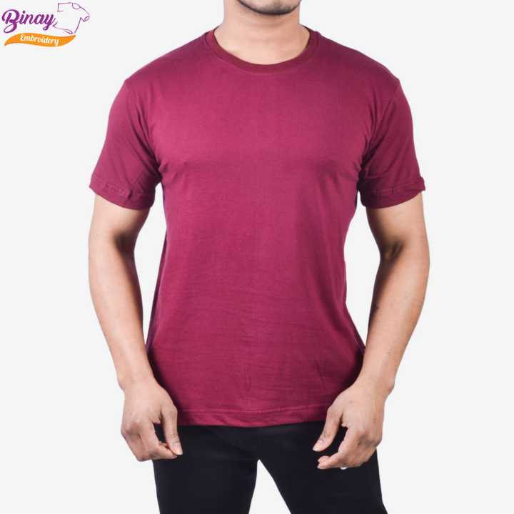 Binay Embroidery Maroon Plain Cotton (Unisex) T-Shirt For Men & Women - Fashion | T-Shirts | Unisex |