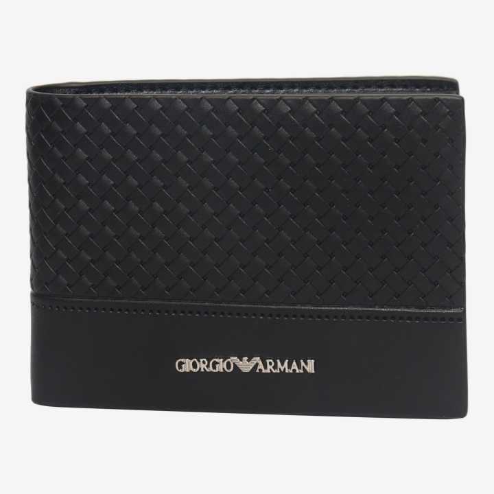 Black Giorgio Armani Texured Genuine Leather Wallet For Men