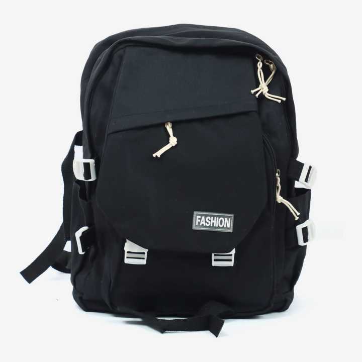Black Polyester Korean Front Pocket Design Unisex Bagpack