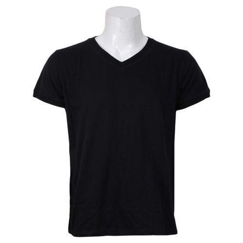 Black Solid Short Sleeved V-Neck T-Shirt For Men
