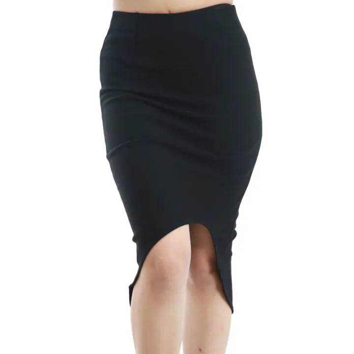 Black Spandex Mix Back Slit Design Plain Skirt For Women