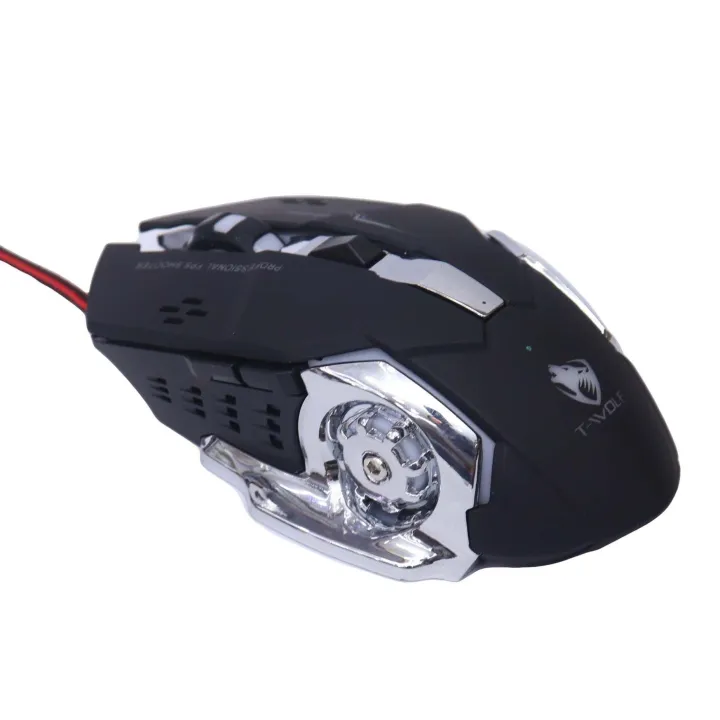 Black/Blue T-WOLF V6 Competitive Gaming Mouse