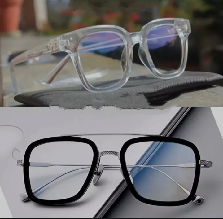 Blue Ray Cut Trendy Transparent Square And Ironman Designed Combo (BUY 1 GET 1) Frame Bluecut Glasses For Unisex