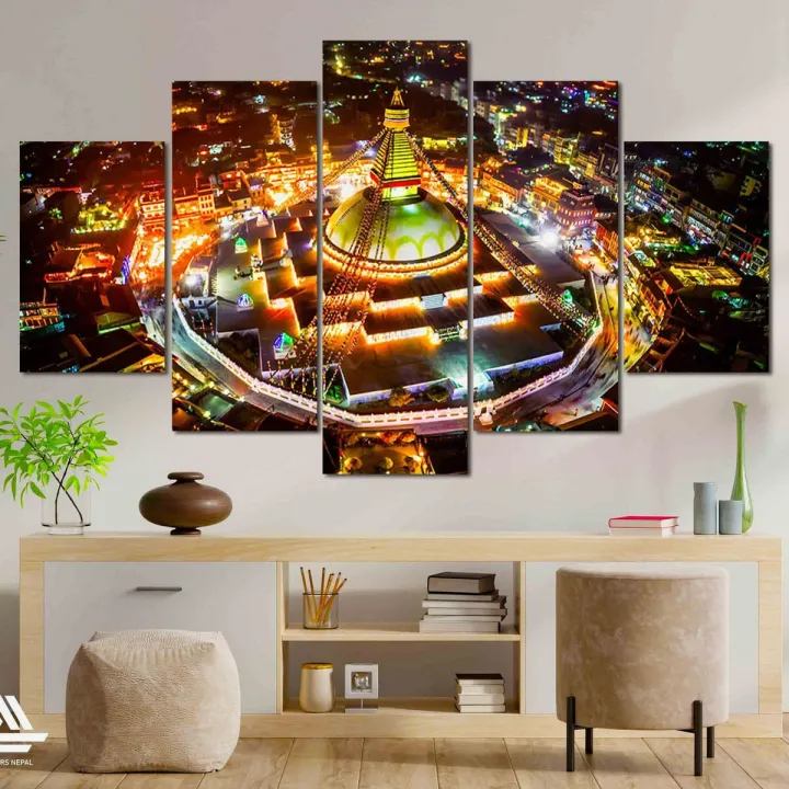 Boudhanath Stupa 5 Panel Canvas | Wall | Home Decor | Canvas | Wall Art With Frame Inside By Etraders Nepal