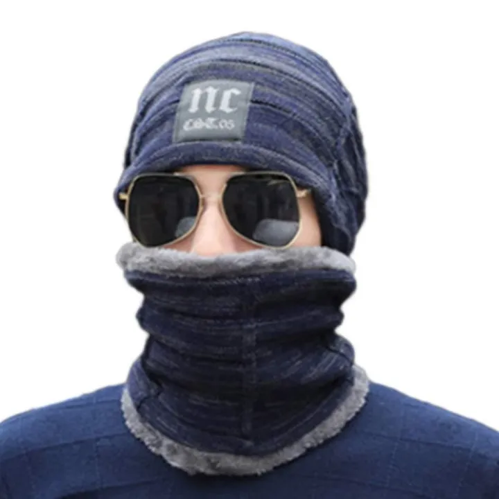 Braided Snood Chunky Knitted Knit Neck Warmer Winter Face Shield For Men | Fashion Warm Hat and Neck Warmer Set