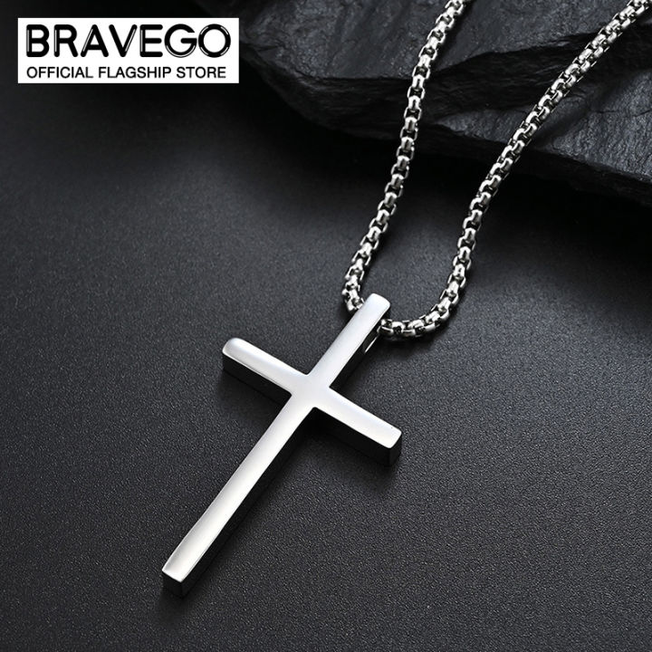 Bravego Titanium Steel Cross Pendant Necklace Men Fashion Necklace