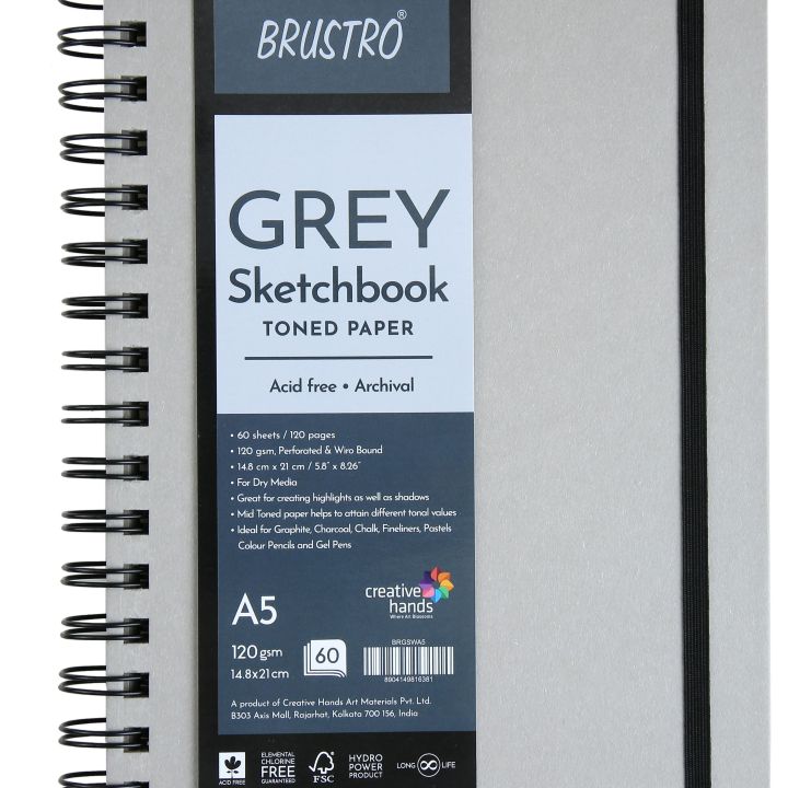 Brustro Grey Sketchbook, Wiro Bound, Size A5 120 GSM (60 Sheets) 120 Pages