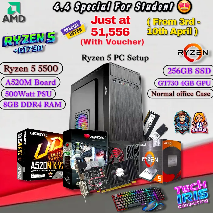Budget%20Gaming%20PC%20(Ryzen%205%205500%20+%20Nvidia%20GT730%204GB%20Graphics)%20or%20Ryzen%205%205600GT,%208%20&%2016GB%20DDR4%20RAM/%20512GB%20&%20256GB%20Nvme%20Gaming%20CPU%20-%20Image%202