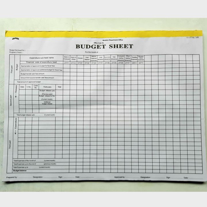 Budget Sheet (AGF No. 208) - New Form For Commerce Students- Per Pad