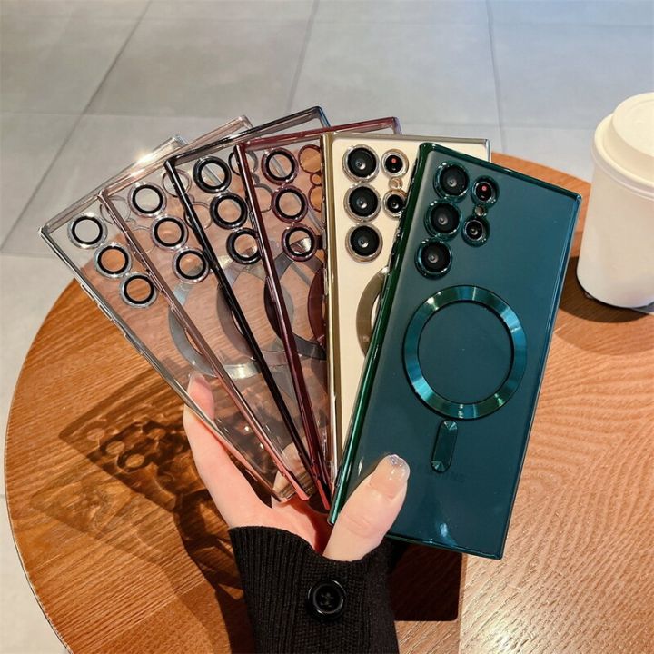 Camera Lens Film Protective Shell For Samsung S22 Ultra S21 S23 S24 Plus PLating Magnet Clear Case Cover