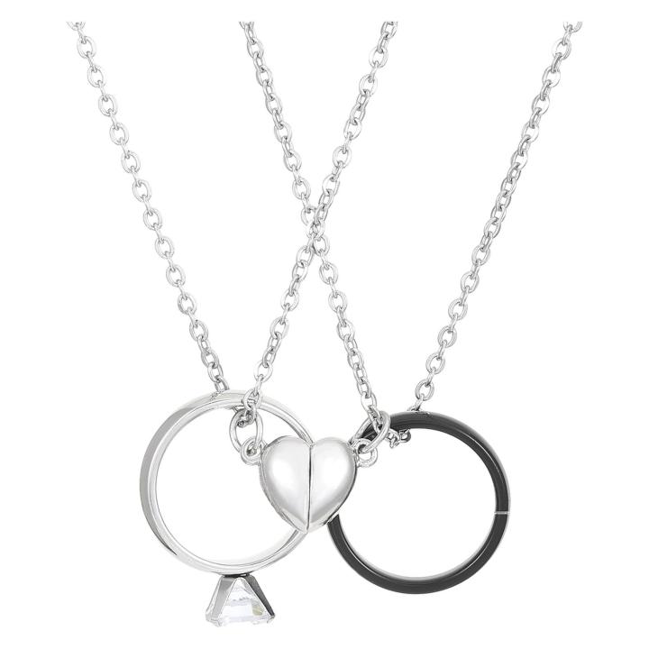 CARAT Exquisite Workmanship Jewelry Romantic Magnetic Heart Ring Couple Necklaces Set Adjustable Matching Pair for Husband Wife Perfect