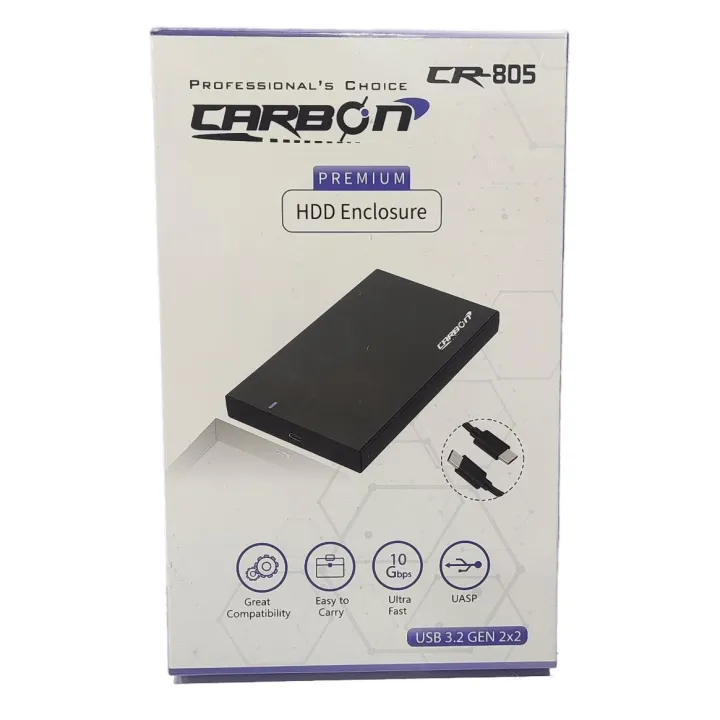 Carbon%20CR-805%20Type%20C%202.5"%20SATA%20HDD%20and%20SSD%20Enclosure%20Case%20USB%203.2%20Gen%202x2%20with%20Type%20C%20to%20Type%20C%20Cable%20-%20Image%201