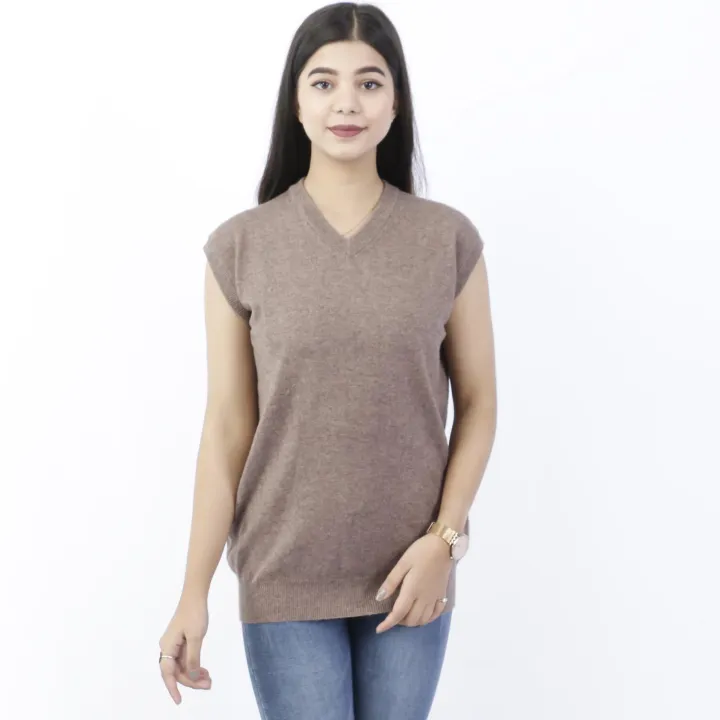 Chestnut Brown Solid Mix Cashmere Half Sweater For Women