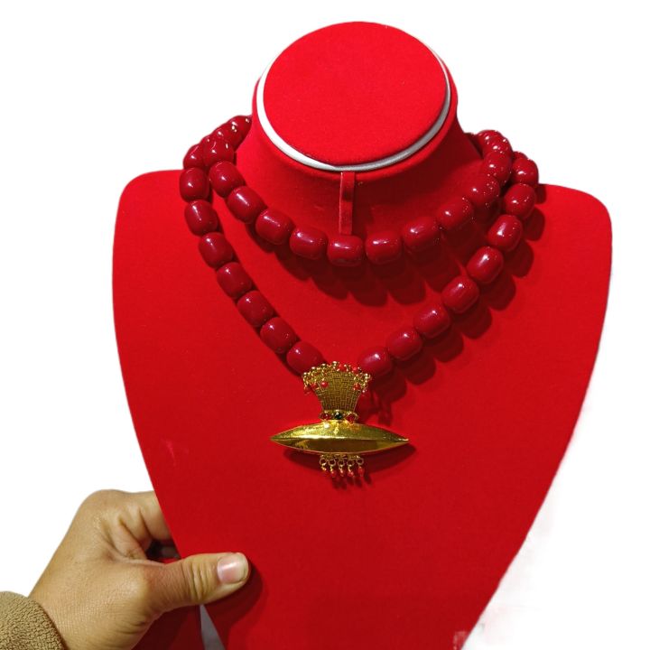 Citadel Gold Plated Traditional Newari Jewellery Tayo Necklace Mala With Red Munga for Women/Girls
