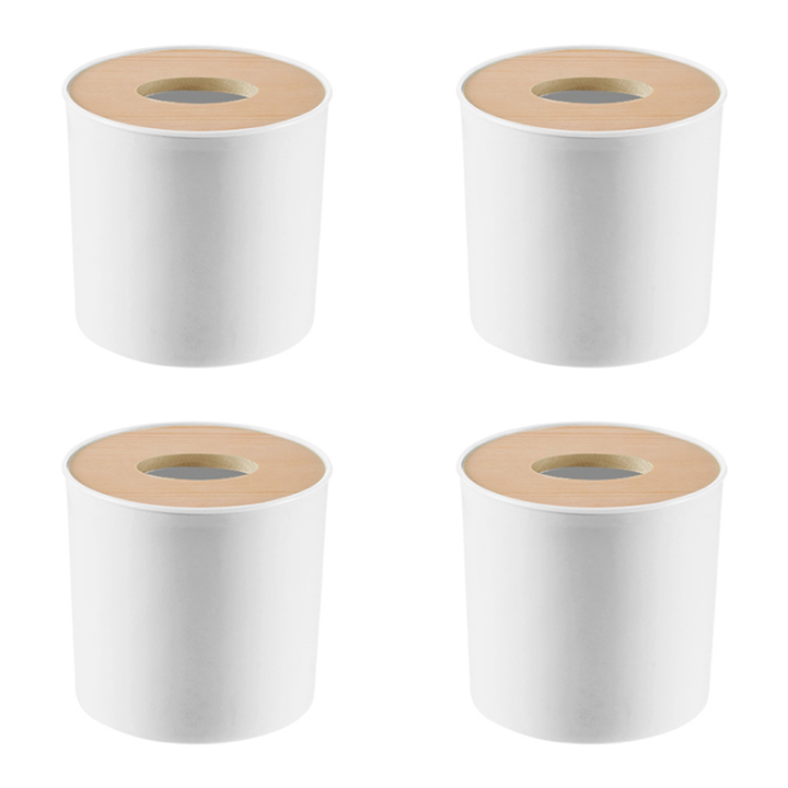 Cluellp-4X Wooden Cover Round Roll Paper Tissue Tube Household Removable Mini Wooden Tissue Box