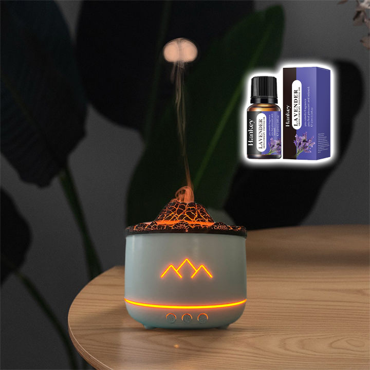 Combo of 260ml Ultrasonic Volcano Flame Diffuser Humidifier & 10ML Lavender Fragrance Water Soluble Essential Oil