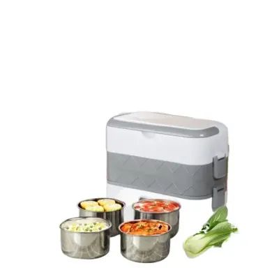 Cooking Lunch Box 4 Liners Stainless Steel Electric Lunch Box 4 In 2 Layer Thermal Heating Food Steamer Cooking Container 2L White 220W