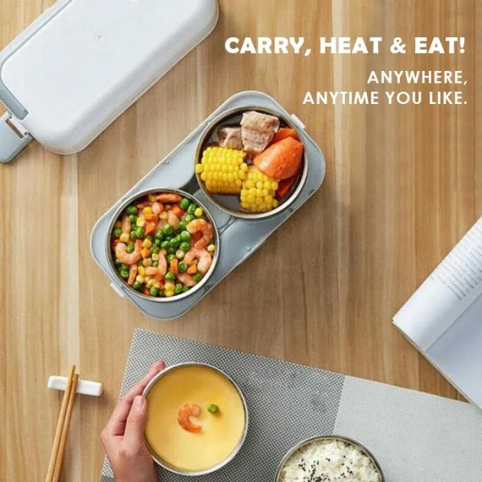 Cooking Lunch Box With 2 Liners Food Grade Stainless Steel, Lunch Case Electric Thermal Portable Cooker 200W