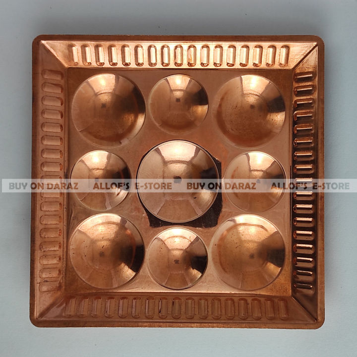 Copper Bhai Tika Thali (26.4 Cm-Square)– Featured With Nine Khanda