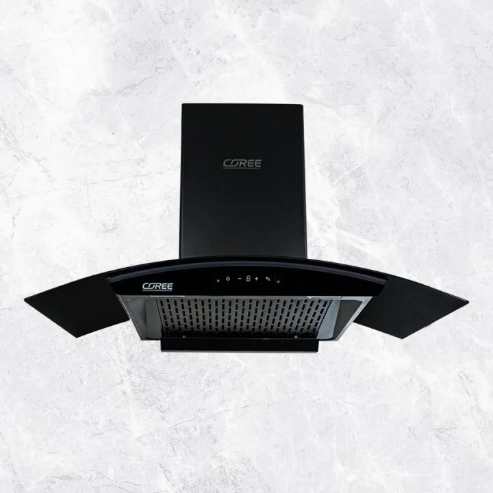 Coree 90CM Curved Glass Electric Chimney With Hand Gesture And Auto Clean Function