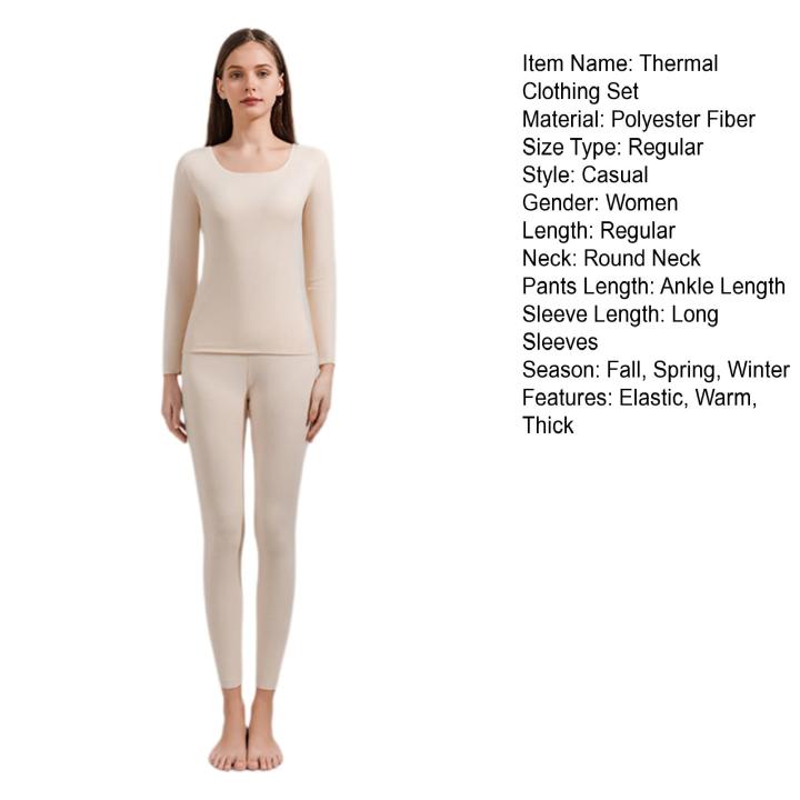Cosme%20Women%20Solid%20Color%20Thermal%20Set%20Cozy%20Winter%20Thermal%20Underwear%20Set%20for%20Women%20Seamless%20Long%20Sleeve%20Double-sided%20Plush%20Pajamas%20Set%20for%20Cold%20-%20Image%201