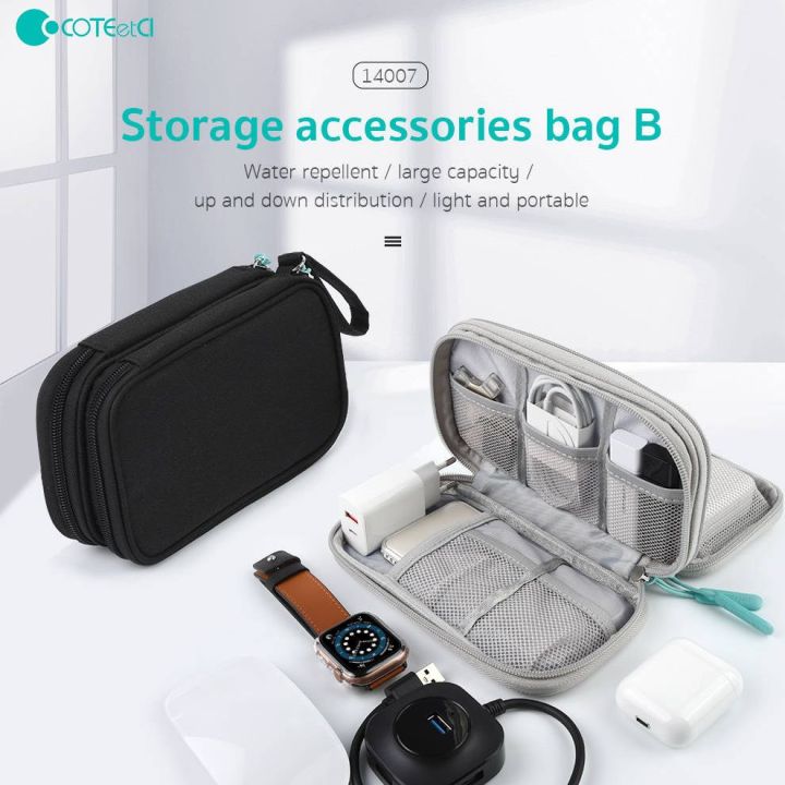 COTECi Electronics Accessories Organizer Bag Waterproof Cable Organizer Bag Pouch, Dual Layers Zipper Portable Storage Bag