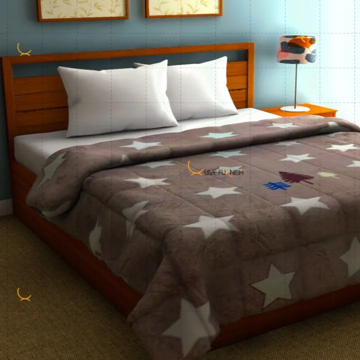 Cream Floral 3D Printed Double Bed Super Soft Fleece Blanket