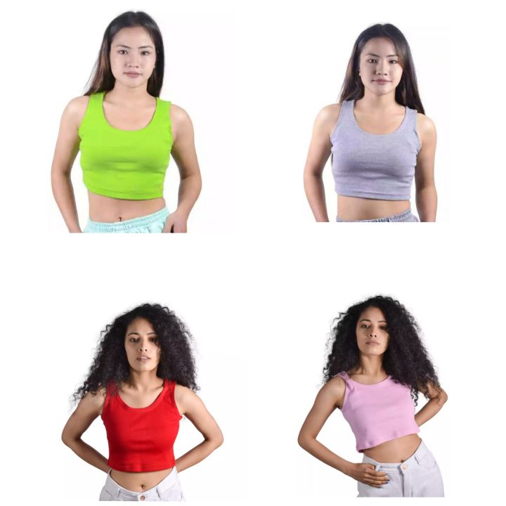 Crop Sando Top 4Pcs Combo Set T-Shirt For Women