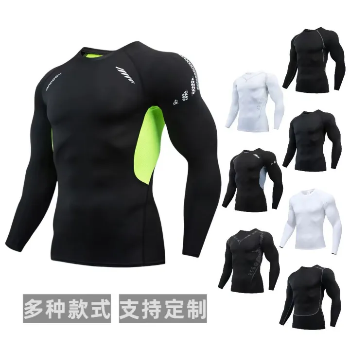Cross Border PRO Men's Quick Drying Breathable Long Sleeve Outdoor Running Sports Compression Print Tight Fitness Training T-Shirt
